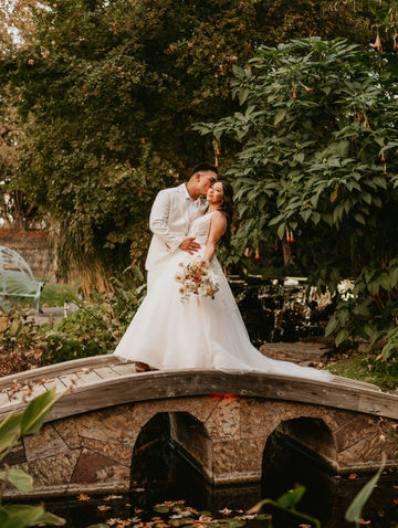 Stroll through Brownstone Gardens and discover enchanting features like a charming bridge, serene koi pond, whimsical butterfly chair, a playful swing, and much more. These picturesque elements create a magical backdrop for outdoor wedding ceremonies, receptions, and photos, making every moment uniquely memorable.